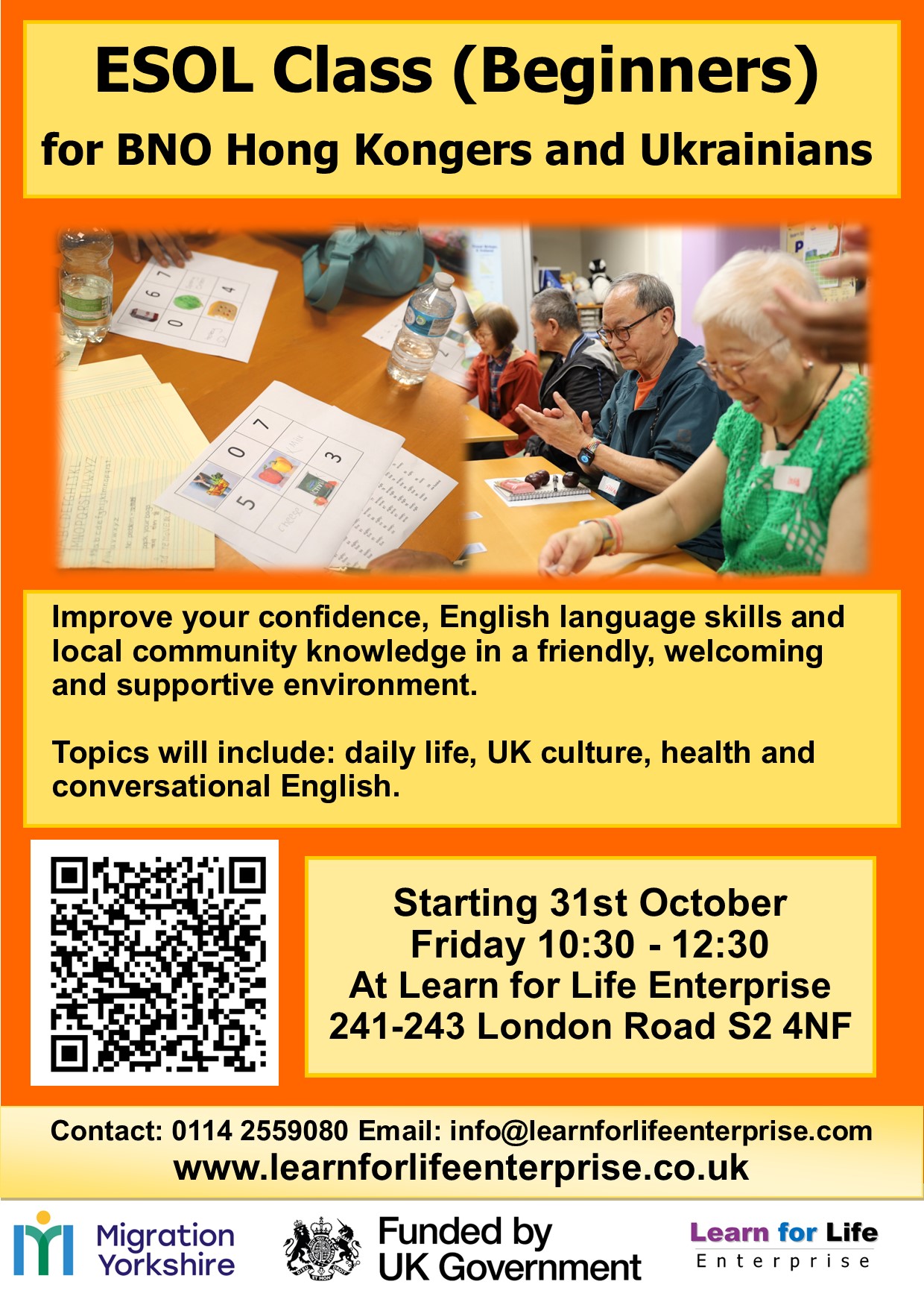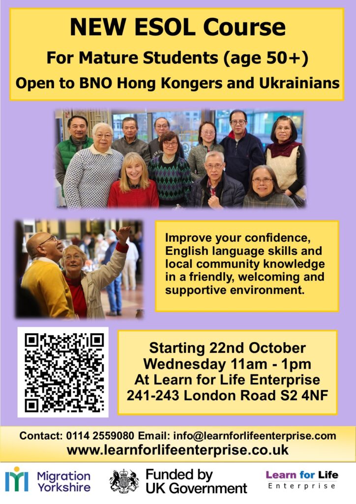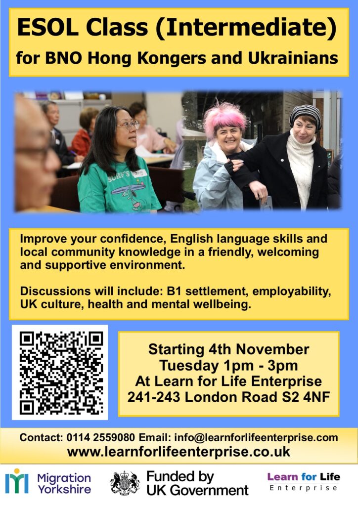 Improve your English language skills with our new ESOL courses for Hong Kongers and Ukrainians. These are being funded by Migration Yorkshire and there will be new courses starting over the new few months including the below. Register today.